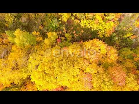 Close Up View of Empty Autumn Forest at Sunset Yellow Maple Leaves Lie o...